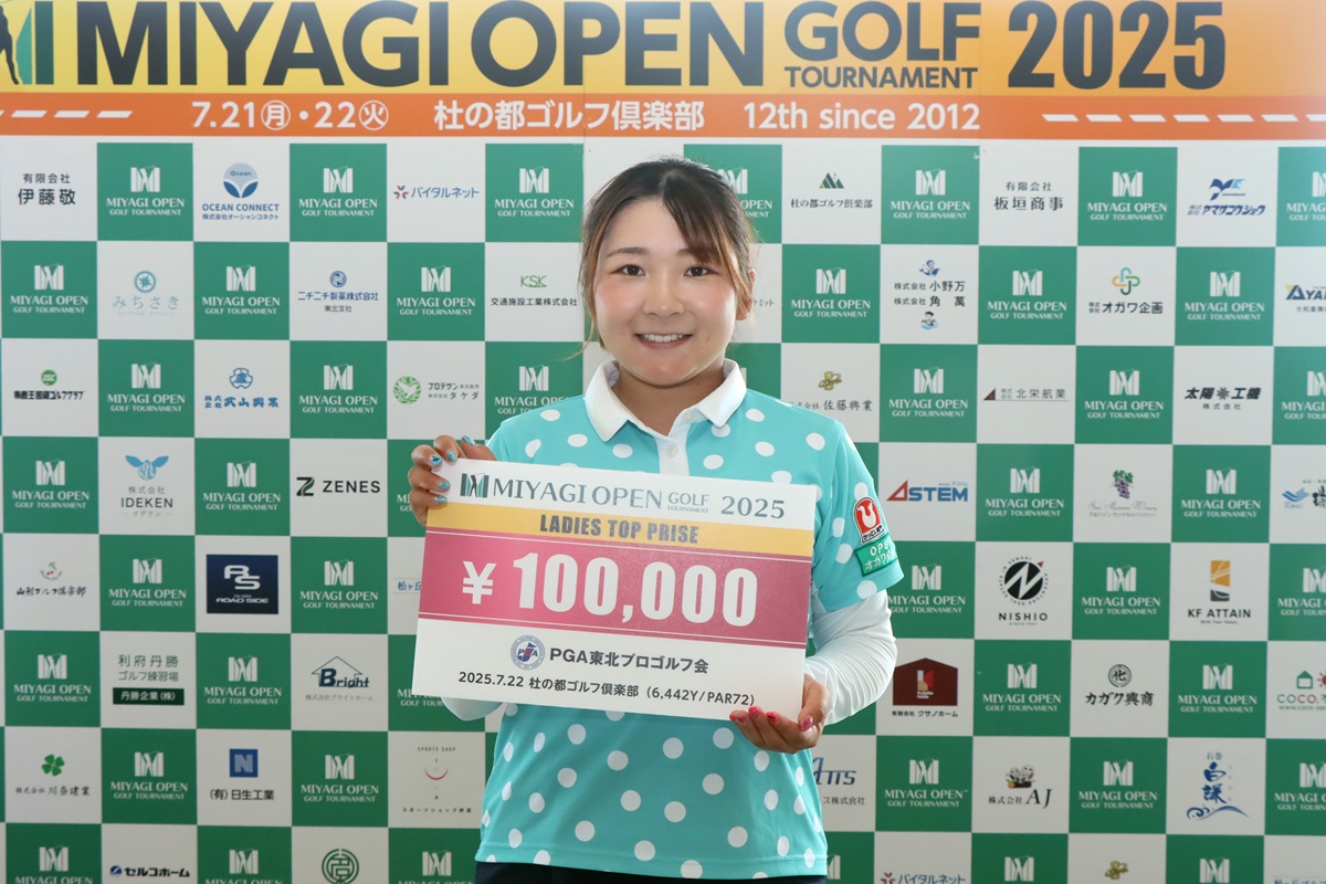 「宮城オープンは3度目の出場ですが、過去2度、女子トップだったので賞金がかかった今回トップになれて嬉しいです。レギュラーツアーを目指し頑張っていますが、また、出場できる機会があれば男子プロを抑えて優勝をめざいたいです」と笑顔を見せていました。