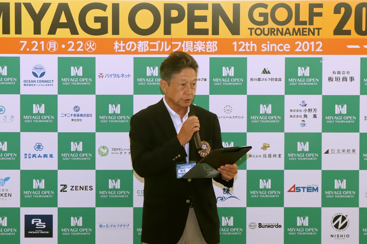 主催の東北プロ会齊藤和人会長が挨拶。「本日は沢山の方々のご参加をいただき、ありがとうございました。また、会場を提供していただいた杜の都GCの皆様、大会関係者、競技委員の皆様、大変お疲れ様でございました。また、多くの協賛各社の皆様にはあらためまして厚く御礼申し上げます。ことしで14年目、第12回となる宮城オープントーナメントですが、多くの皆様の協力を経て開催できております。また、来年も開催できるよう努めて参りますので、引き続きご協力お願い申し上げます」と結びました。
